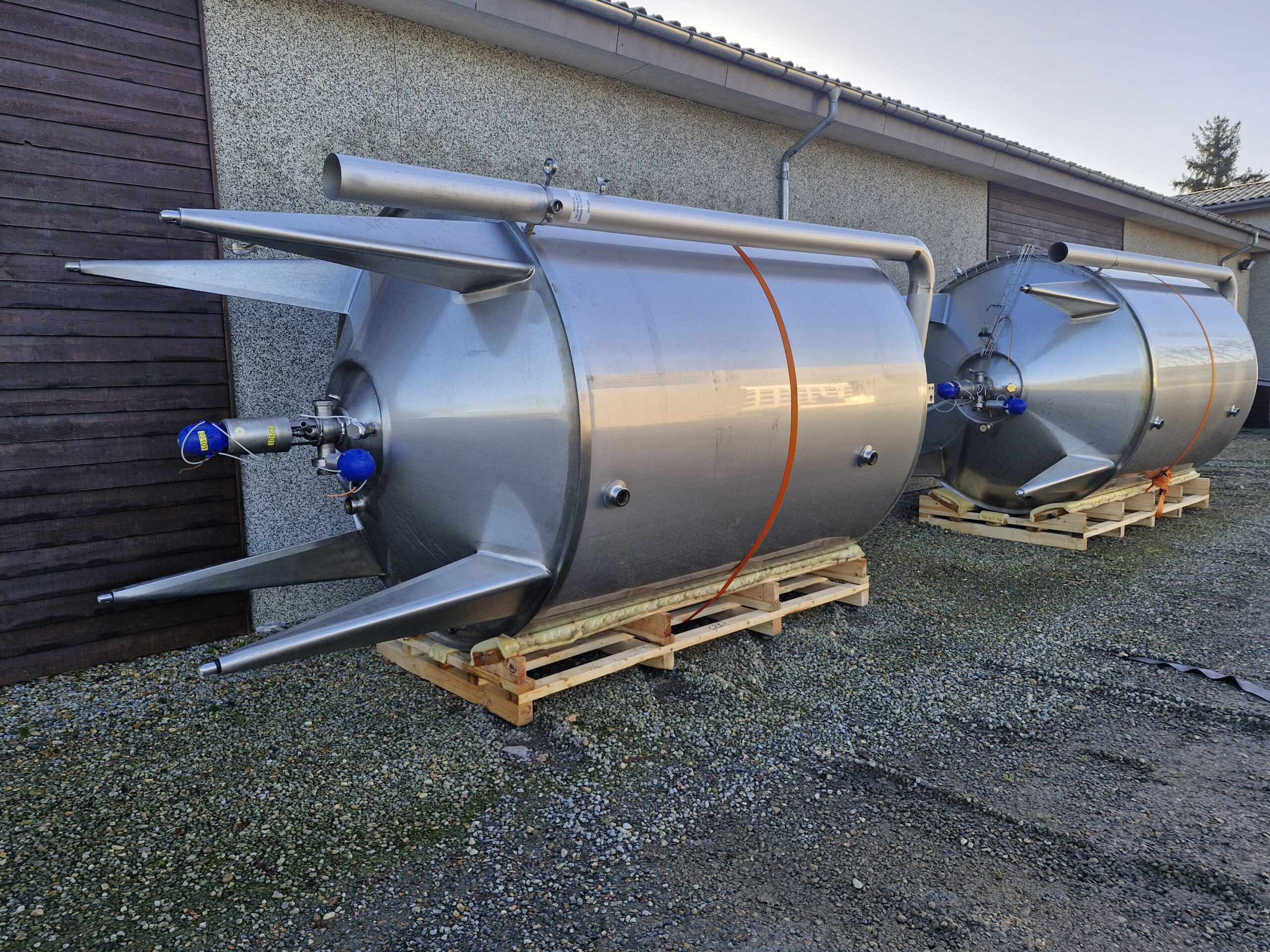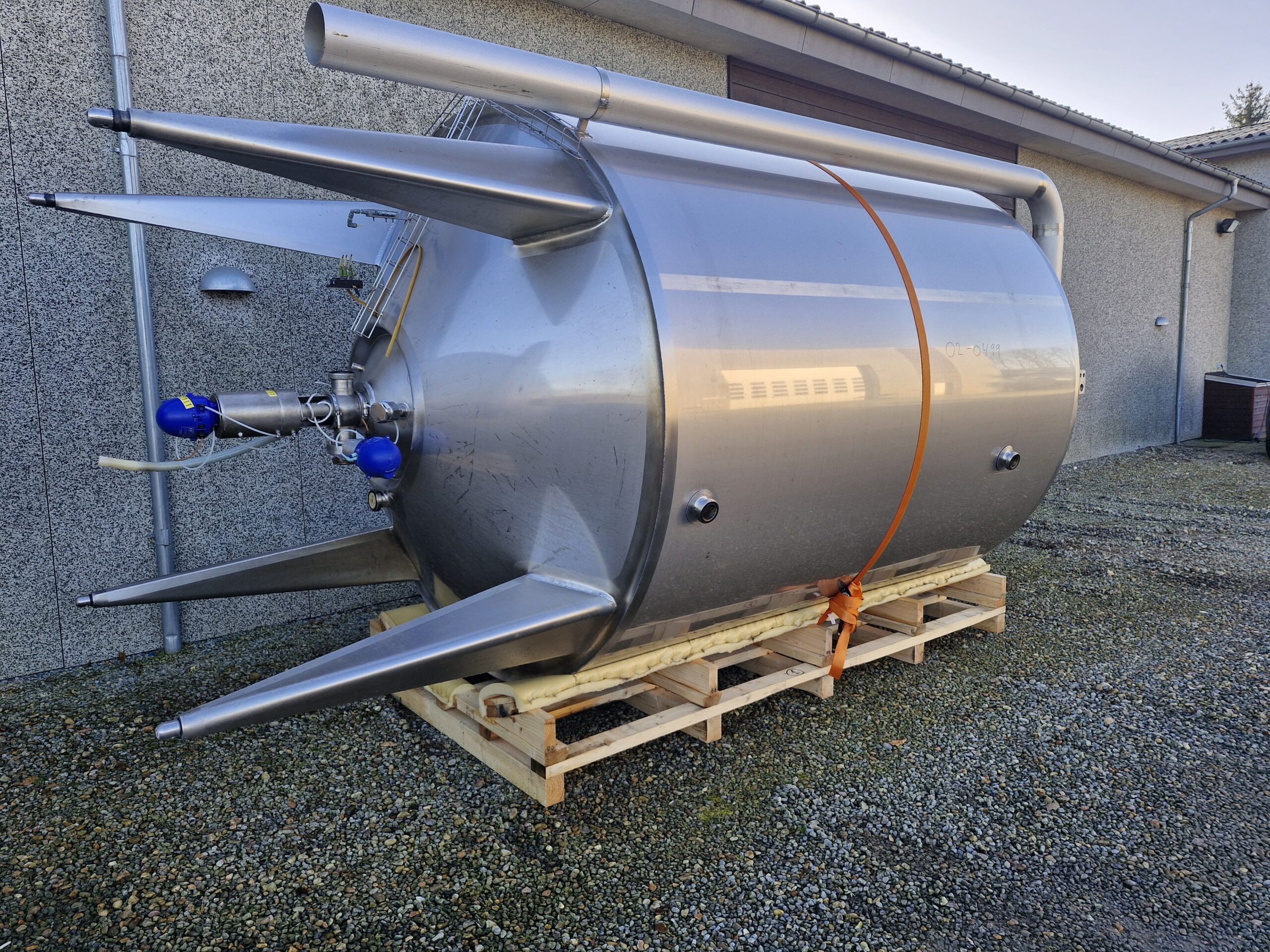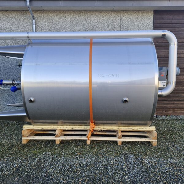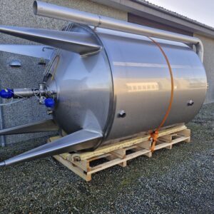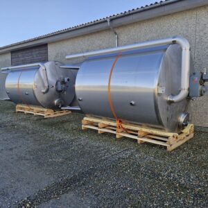 10.000 liter procestank 02-0499 Volumen: 10000 Lager: 2 Beskrivelse Stående procestank Køle/varmekappe Konisk bund 4 ben Udløb: 4″ Rammerørværk Mandehul Isoleret Justerbare tæer Udluftning CIP-rengøring Dimensioner: ø2400/2250mm – sh 2600mm – th 4350mm Skriv til os Kontakt os Anders Lundum Salgschef, brugt udstyr +45 4093 3957 alu@fhscandinox.com