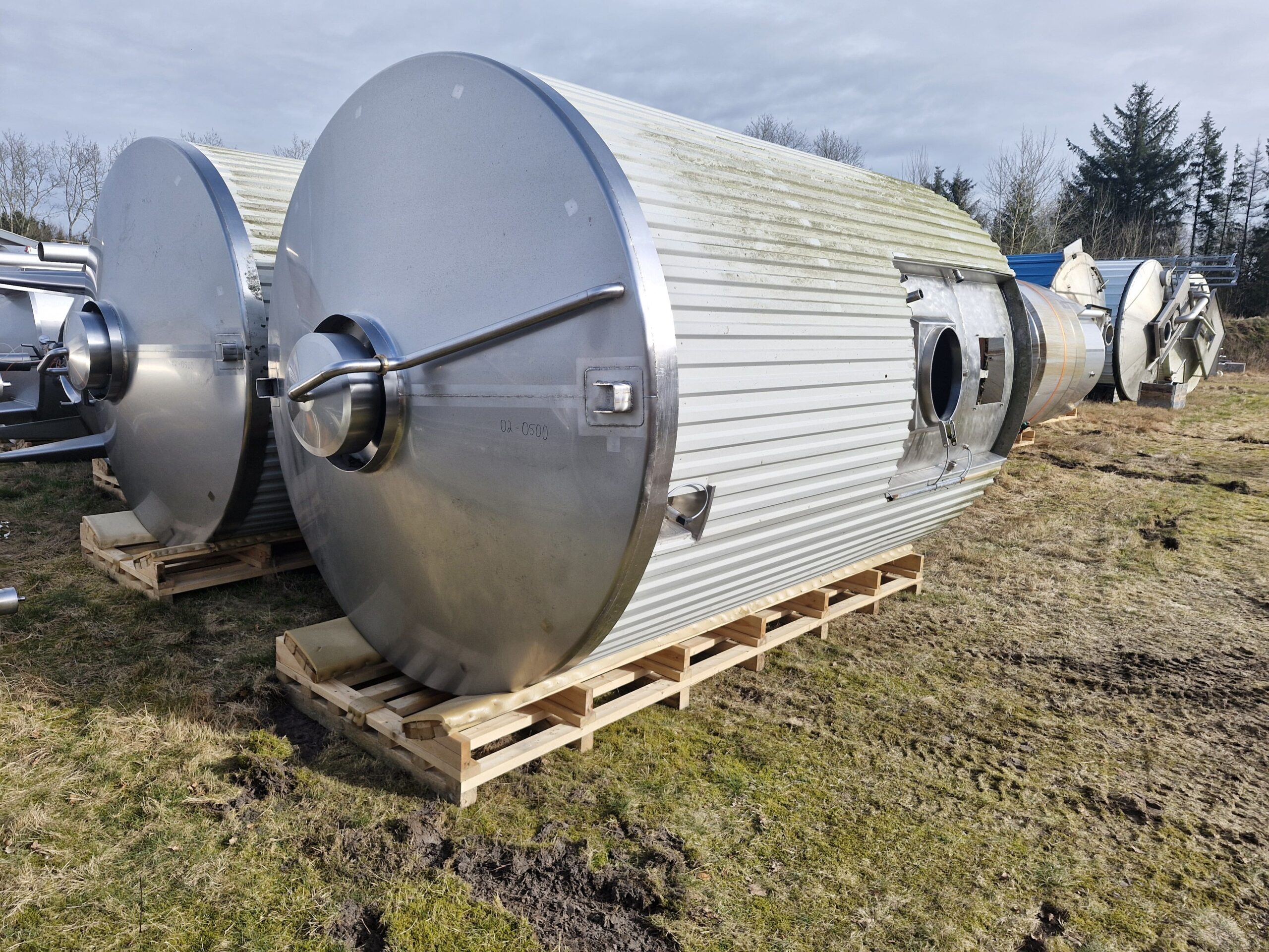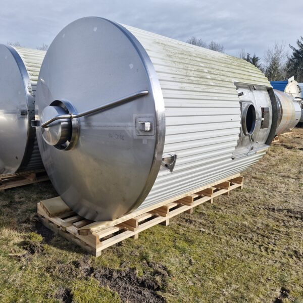 15.000 liter procestank 02-0500 Volumen: 15000 Lager: 1 Beskrivelse Brand: LP Koldning Årgang: 2011 Stående procestank Køle/varmekappe 1/3 Konisk bund og top Udløb: 2 1/2 “ Røreværk i svøb Mandehul i svøb Isoleret Udluftning CIP-rengøring Dimensioner: ø255/2800mm – sh 300mm – th 4500mm Skriv til os Kontakt os Anders Lundum Salgschef, brugt udstyr +45 4093 3957 alu@fhscandinox.com
